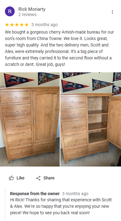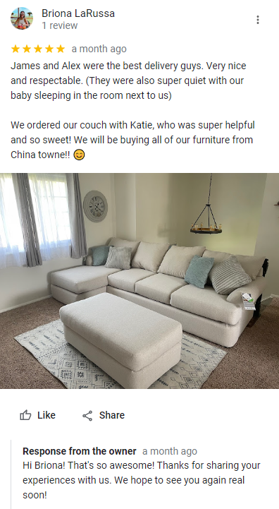 One of the true measures of a business's success is the satisfaction of its customers. China Towne Furniture and Mattress has garnered a strong reputation for exceptional service and high-quality products, as reflected in our Google reviews. With glowing testimonials from delighted customers, it's no wonder why this store has become a trusted destination for furniture and mattress shoppers in Syracuse and beyond.